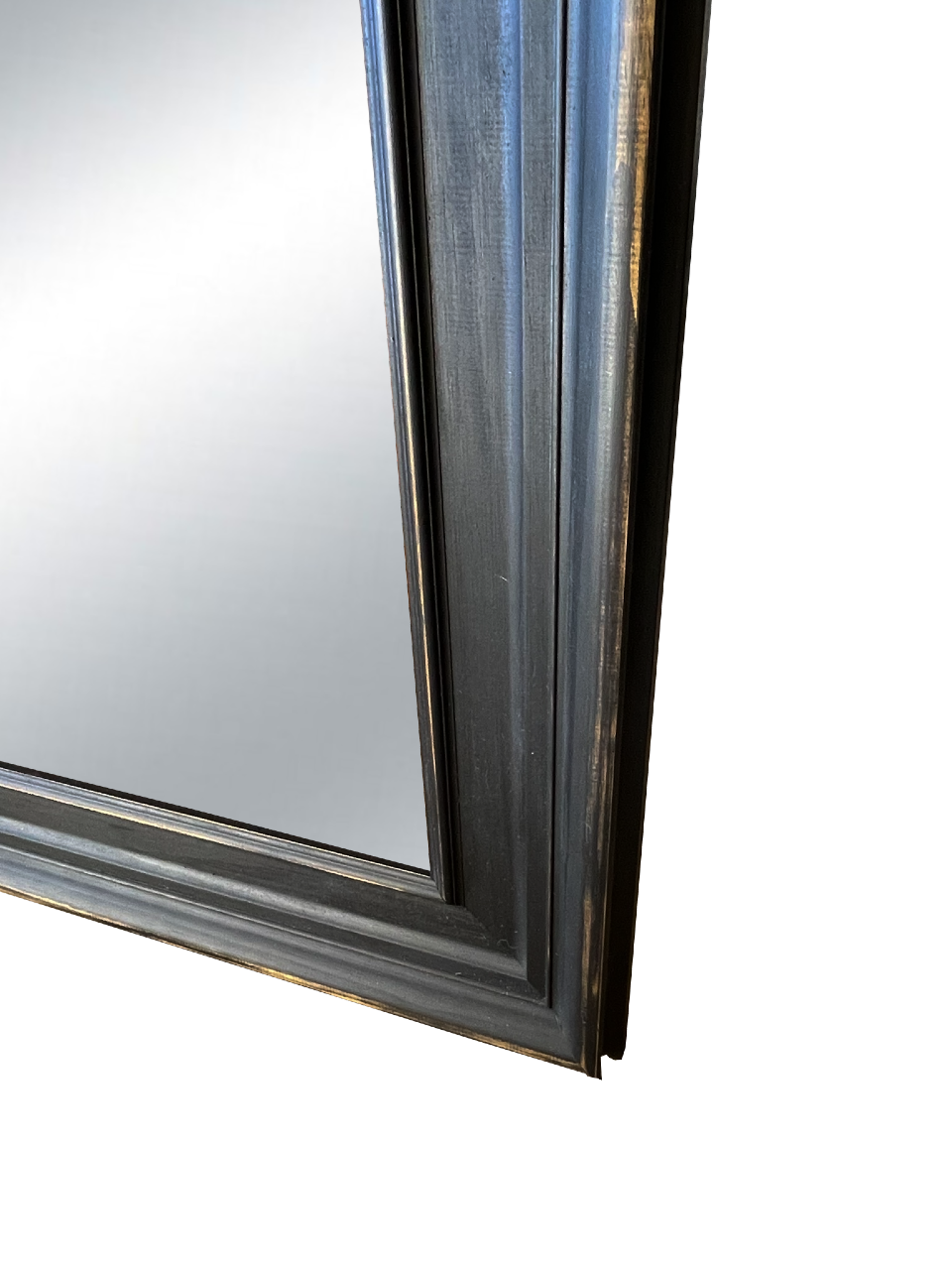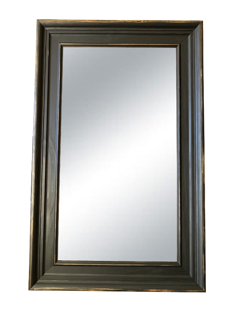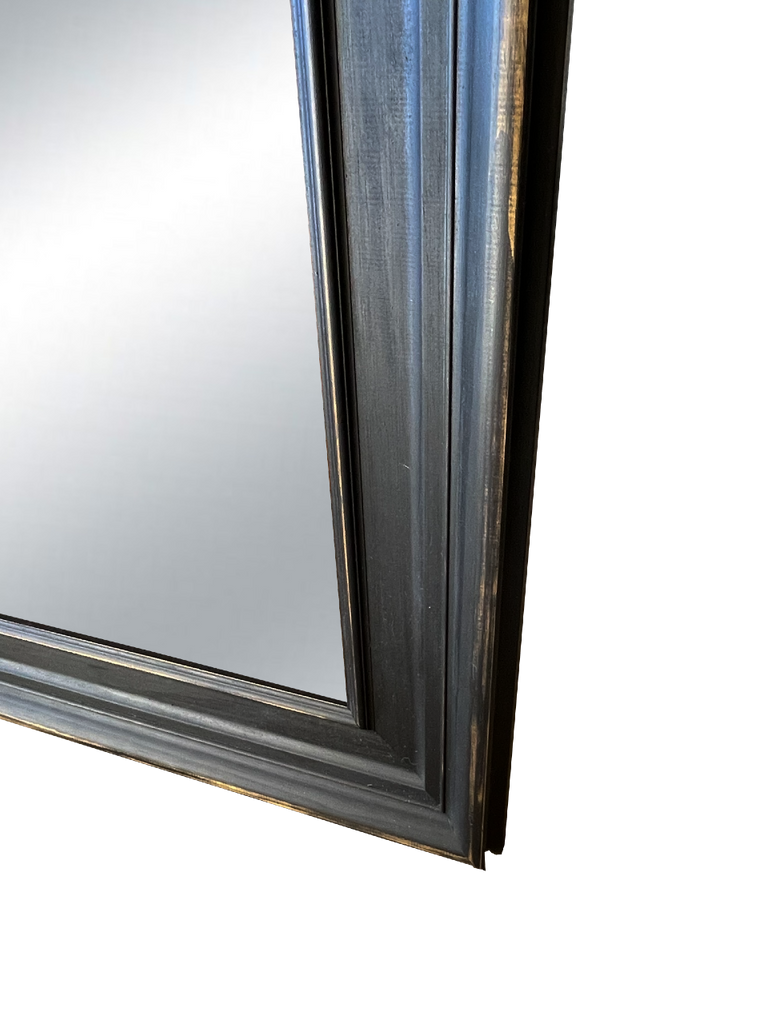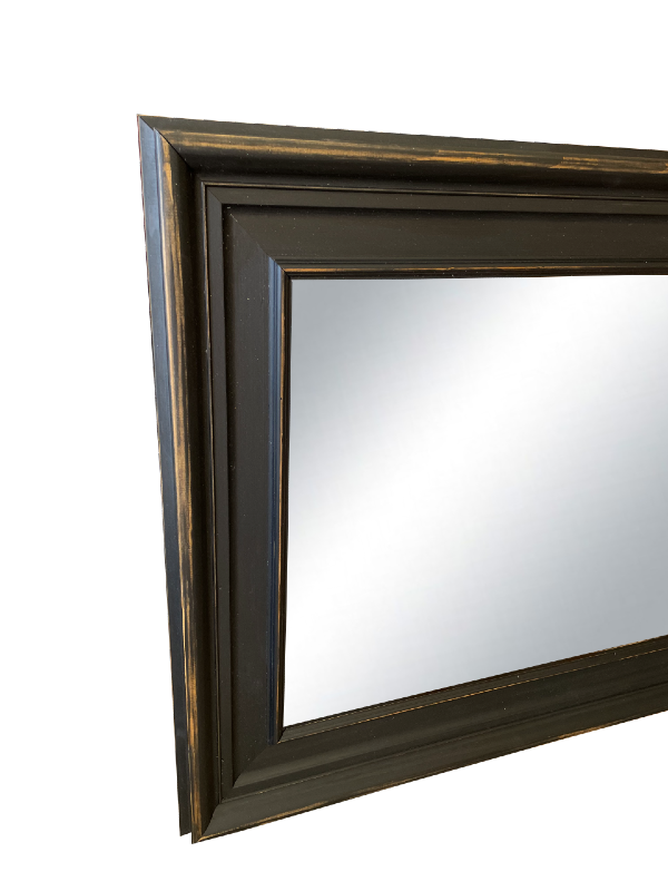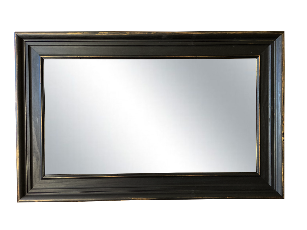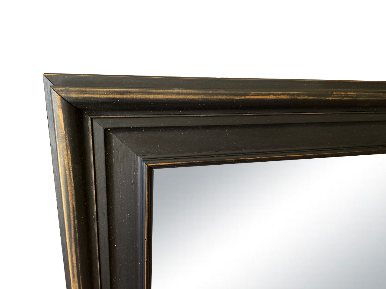 • Colonial Style Aged Black Wide Timber Framed Wall Mirror.